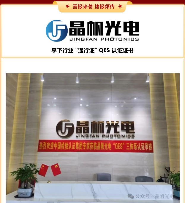 【山城传捷报】晶帆光电 QES 三体系认证通过,高质量发展再添 “压舱石”